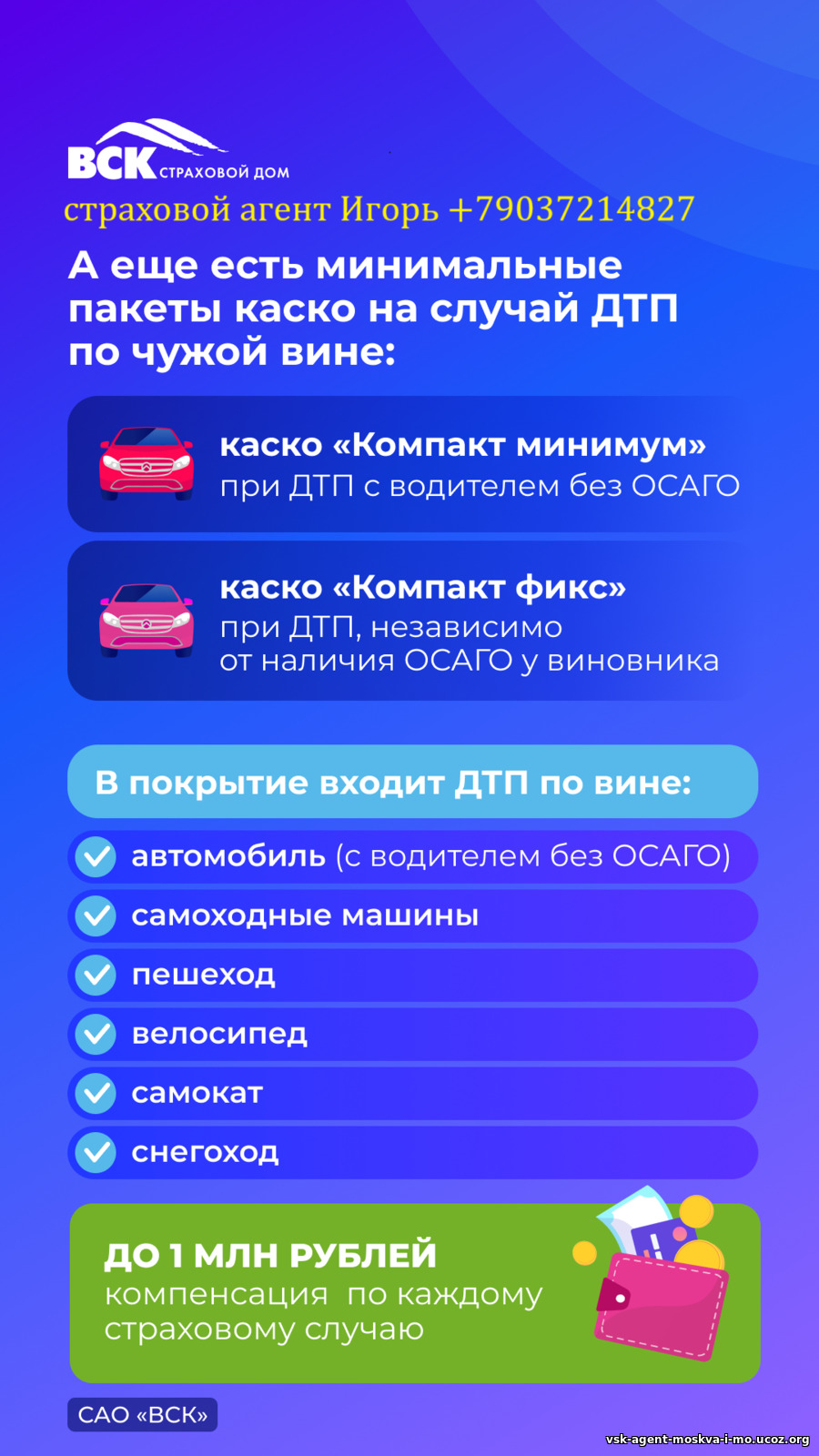 Сайт страхового агента ВСК